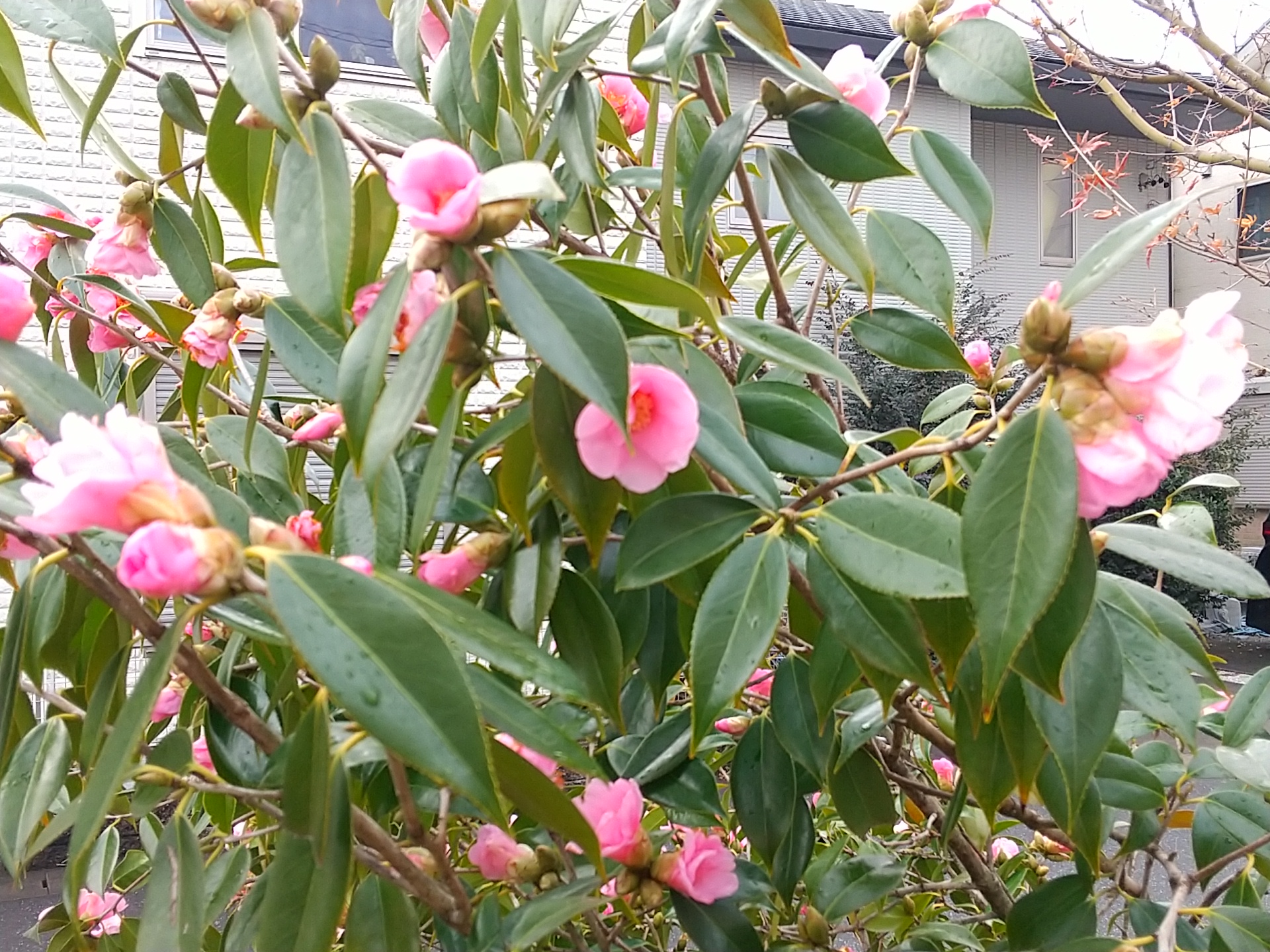 寒いこの時期、落葉樹は葉を落とし、咲く花も少ないですが、我が家ではツバキとキンカン