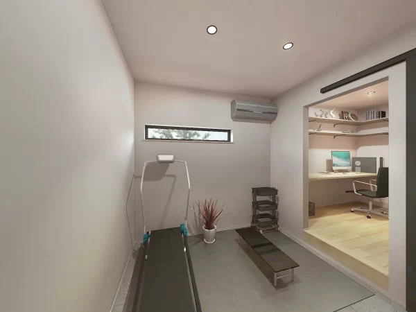 フィギュア・塗装・PC作業・トレーニングなど、ご主人の多彩な趣味を楽しむための専用空間。