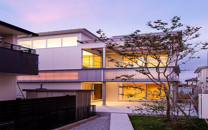 ちょっとした客人を迎えたり、のんびりとしたティータイムを満喫できる、透明な屋根のかかった大きな半屋外空間を設計しました。縁側や土間など日本の家のDNAである半屋外の空間を進化させ、新しいライフスタイルの家を浜松から発信します。