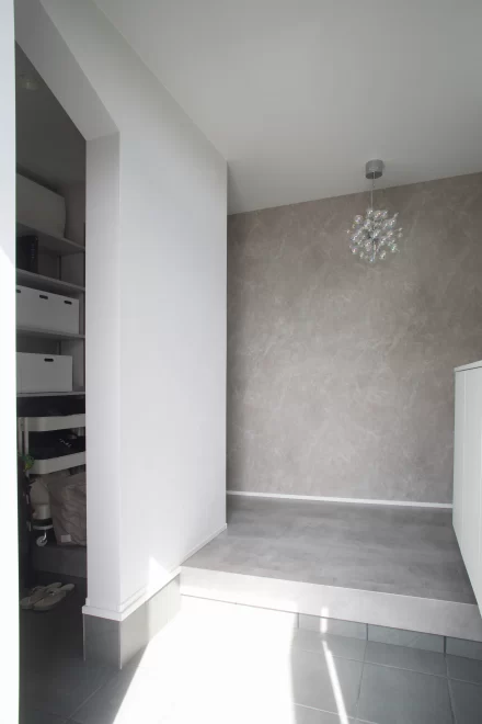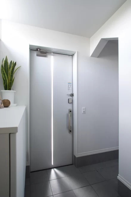 玄関ドアのセンタースリットから外の光を取り込むことで空間に自然の明るさをプラス。