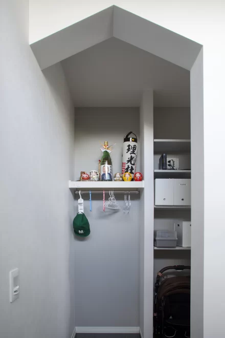 開口部分の垂れ壁は、あそび心をプラスして三角屋根のように。