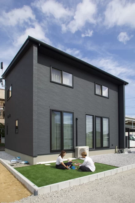 シンプルになりがちなBOX形状の外観ですが、袖壁や玄関部分にアクセントをつけることで、デザイン性を高めました。